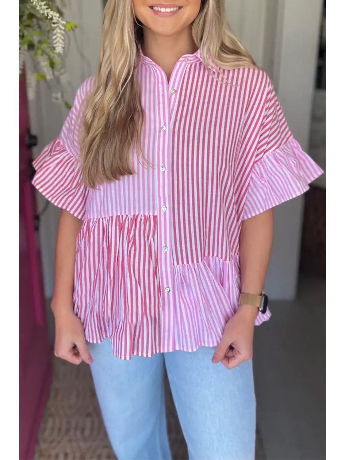 The Pink Striped Ruffle Top